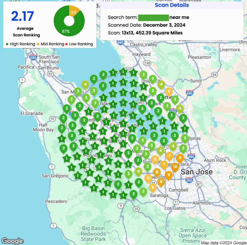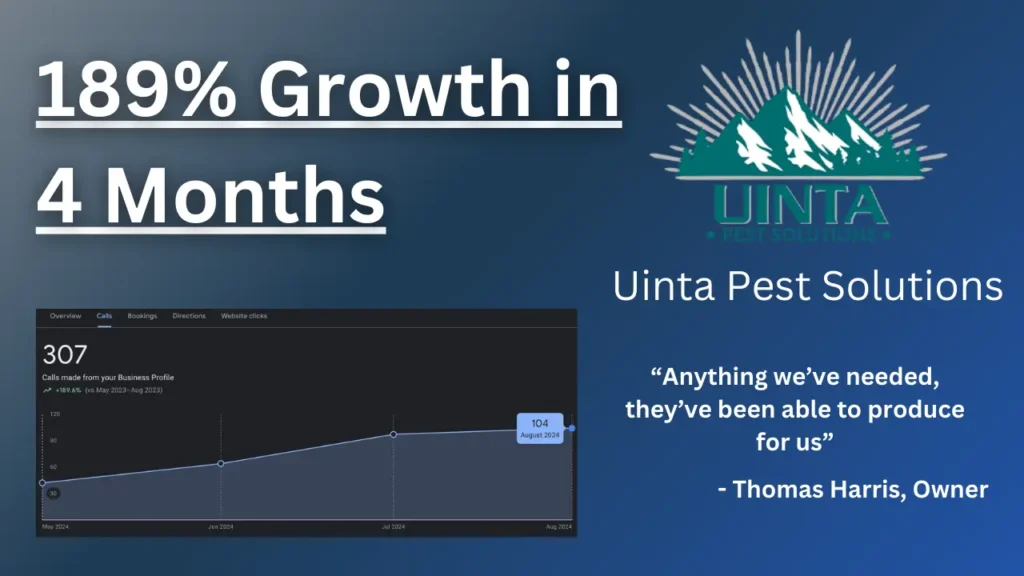Uinta Pest Solutions, thanks to us, now holds claim to the top search results for their keyword term in nearly one third of the city with over 200,000+ serviceable customers.